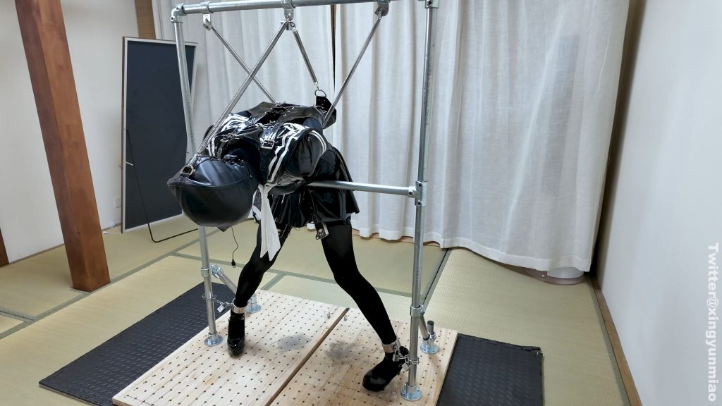 “The Slave Academy, as the name suggests, is an institution dedicated to training slaves, aiming to strengthen their servility and achieve complete submission, becoming meticulously trained female playthings. Simultaneously, they undergo rigorous daily training tasks. Besides the required sleep, the slaves must remain in training around the clock, entering a state of constant estrus. In addition to classes, the academy assigns daily homework to consolidate the day’s learning. • The goal of this special training is to put the slave in a “dilemma”—the slave is half-bent over a horizontal steel pipe, a full-covering leather hood covering her head, obscuring her vision and intensifying sensory deprivation. Her arms are securely restrained behind her with a single glove, her legs spread apart and secured to the ends of the pipe with metal shackles. Her anus is inserted into a steel hook and secured to the pipe via a high-tension spring. Simultaneously, the spring pulls her head and single-gloved hand upward, connecting them to the pipe, ensuring that any slight movement triggers a chain reaction. • This restraint system completely confines the slave’s body—raising her upper body pulls on the steel hook in her anus, causing severe discomfort; lowering her head tightens the single-gloved spring, causing unbearable arm pain. In short, no matter how the slave adjusts, she cannot find a comfortable position and is forced to endure the torment of “standing restlessly.” • This training goes beyond static punishment; it also incorporates auxiliary equipment to amplify the slave’s sensory stimulation. Two electric shock devices are installed on the inner thighs, and eight electric shock patches are attached to the base of the thighs. These patches will release pulsed currents in turn, with the intensity varying randomly, ranging from mild tingling to severe stinging, forcing the slave’s body to twitch continuously. At the same time, a training device equipped with five high-frequency vibrators is inserted into the sensitive areas. These vibrators vibrate continuously to maintain the slave’s state of excitement. • As the finale of the special training, the students of the slave academy must achieve “juice” [X_X] through vibration stimulation and successfully ejaculate before get out of class ends, in order to rest. Failure to complete the task in time will result in restricted breathing and cessation of breathing punishment until the slave ejaculates in despair. Attention!: The slave in this film is a transvestite.”