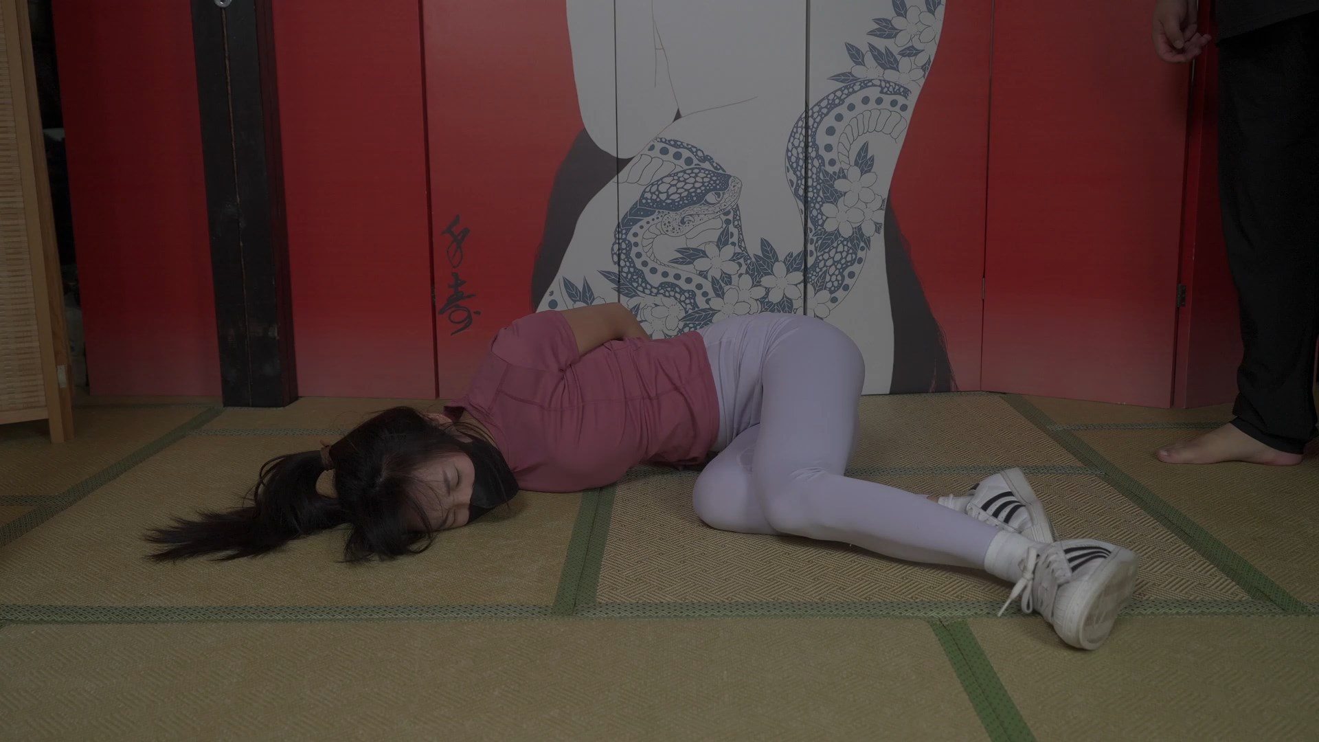 “Yoga Pants Ouch, Encounter with Stretching Pervert, Torturing Herself Crazyly In the End, He Hanged Her Up, Stripped Her, and Abandoned Her”