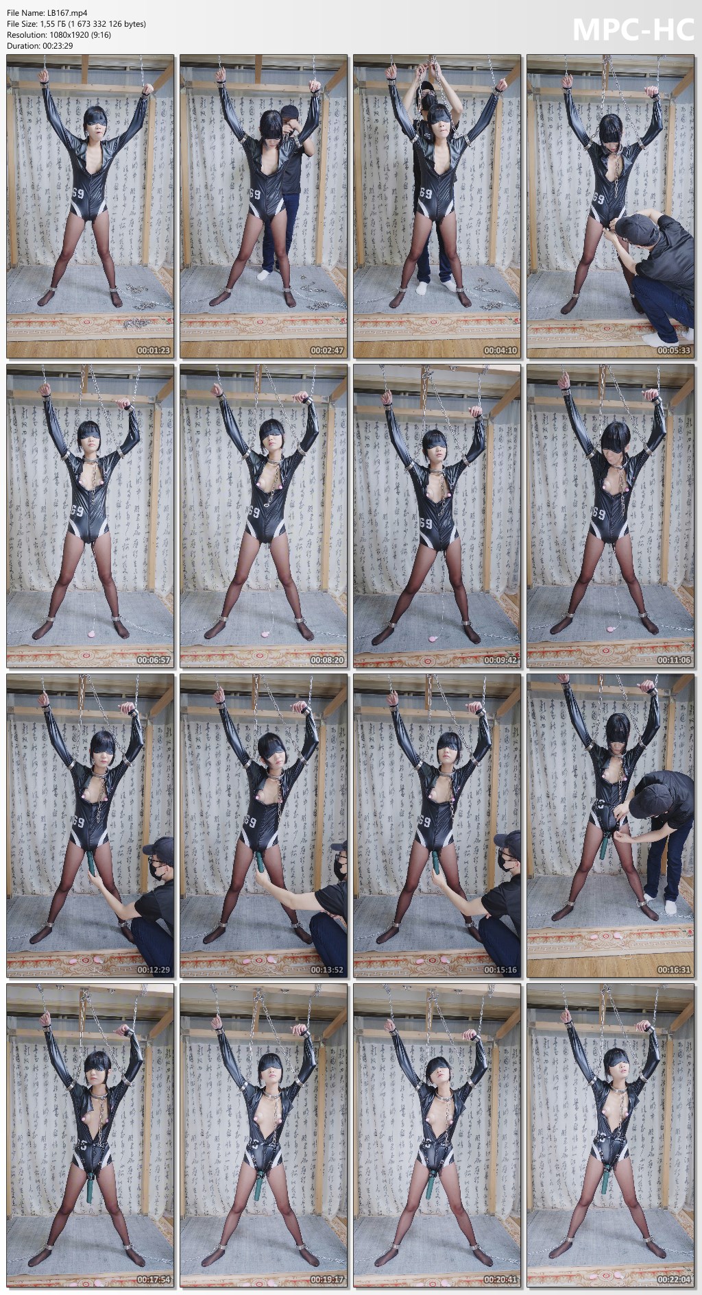 “Hands and feet spread apart with shackles and chains, upper arms also shackled. Start with a jump stunt, then use a dildo to stimulate her vagina. When she’s about to cum, remove the dildo, withholding cumshot. After a few minutes of discomfort, secure her with the dildo strap, and then turn on the high gear for cumshot”