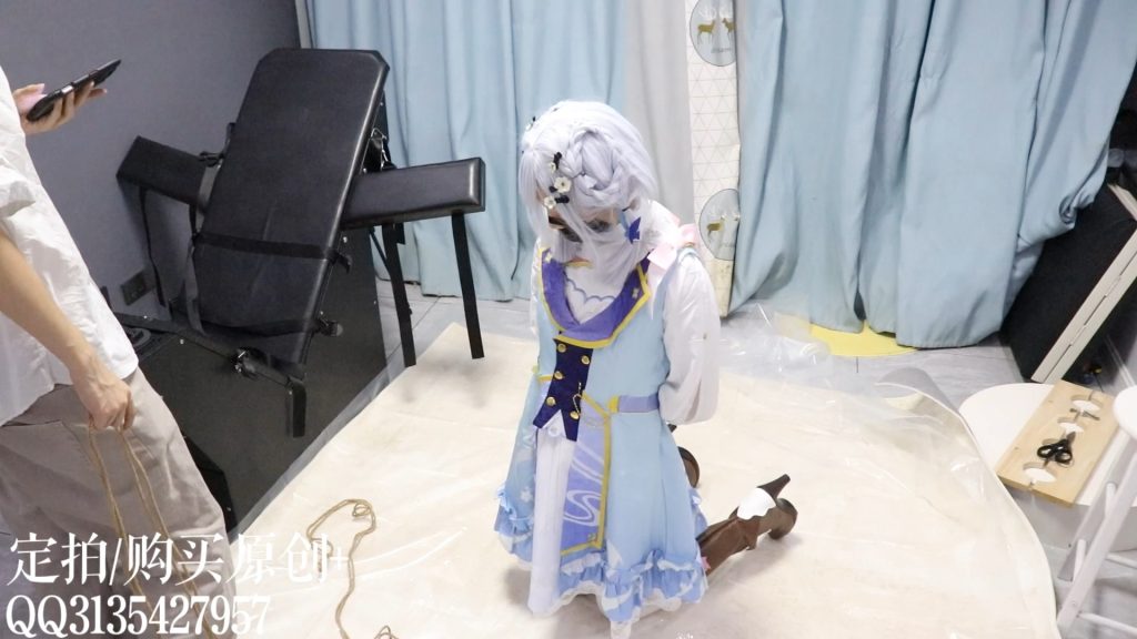 “The final masterpiece of the fourth quarter is here! A sincere work once a quarter is here! Tons of content elements: cosplay, hands wrapped in tape, suffocation with tape covering the face, four horses, toe binding, TK tickling, urination challenge with lots of water and diuretics, urine leakage challenge, leather boots/white stockings TK, plastic bag over head (the girl resisted so much she almost failed), peeing in a puppy pose, embarrassing urine leakage challenge with camera interaction, and many more elements! The entire edited video is over an hour and a half long, full of sincerity! Costume: Ayaka Kamisato – Letter from the Flower Season Scene 1: Preparation + Defeated Restraint Before the shoot, the girl hadn’t urinated for over 20 hours. She drank a large amount of water and beverages 3 hours beforehand (three bottles of mineral water + beverages, nearly 2L). Before the actual shoot, we tested her willpower; she stubbornly refused to urinate. Therefore, before this shoot, we also fed her a small amount of furazolidone (a diuretic, prescription medication; please use under guidance). After waiting for the medication to take effect, the restraints began: Head restraint: Seven small cotton towels, about the size of a girl’s fist, were stuffed into the mouth. Then, PVC tape was carefully used to seal the mouth (cross sealing + horizontal sealing + two vertical reinforcements from the chin to the cheek). Hands were clenched into fists, and silver tape was used to wrap around the small fists and hands. Then, a classic Japanese four-horse stance was applied, focusing on leg restraint. The knees, calves, and soles of the feet were reinforced with rope loops. Notably, the high-heeled boots were also tied with rope around the soles of the feet, and the heels of the high heels were also tied together. After a few minutes, the girl was asked to look at the camera, adorably struggling and whimpering. Scene 2: Suffocation + Urinary retention + TK challenge! Scratching until vomiting! (She really vomited. Even after drinking a lot of water, vomit and water flowed from her nose, and the stuffing in her mouth was forced out by a large amount of stomach fluid! However, because she drank a lot of water beforehand, the vomit wasn’t too much or too disgusting to be disturbing, so I only filmed some.) Because she was wearing boots, she focused on scratching her upper body. Unexpectedly, she vomited after only a few minutes of scratching. Furthermore, during the TK (telekinesis) process, her mouth and nose were randomly sealed with tape, and her nose was covered with tape. Under the triple debuffs of a blocked mouth, suffocation, and needing to urinate, she vomited after only a few minutes of filming. Scene 3: Shoes off, toe binding in a “four-horse” pattern, white stockings TK (multiple debuffs, suffocation and urinary retention TK). Because she vomited from scratching in Scene 2, she cleaned up for a while and re-gaged her mouth (this time, the gag was removed and replaced with tape, but the same method of multiple layers of reinforcement was used). Then, the ropes were untied, the boots were taken off, and the soles and toes were tightly bound together, with both feet bound together in a “four-horse” pattern. The tender flesh of the forefoot was squeezed together, almost protruding into a foot acupoint! It was especially convenient for scratching! This time, the focus was on scratching the lower body. Scene 2 mainly scratched the armpits and waist and abdomen. Scene 3 added TK to the soles, insteps, arches, between the toes, and groin, and again, tape was used to seal the nose and suffocate her during the TK! Scratching continued until she leaked urine!!! Later, a plastic bag was added to her head, but the girl in the video was really breaking down and refused to let it go. It was put on but not sealed properly. The struggle was too intense. Scene 4: Unbound Challenge + Public Urinating Shame Challenge! Desperate Pleading! As mentioned earlier, we conducted numerous experiments for this project, but the girl always refused to urinate due to shyness. Furthermore, the four-horse stance made it difficult to urinate (mainly because Tangtang’s willpower was astounding!), so we kept increasing the intensity. Unexpectedly, even with maximum intensity and diuretics, she still refused to urinate due to shyness! Even with her lower abdomen bulging from drinking so much water and her bladder area protruding, she still wouldn’t urinate!! So the urinating challenge turned into a urinating leakage challenge: she had to urinate in front of the camera, otherwise she would never be untied, scratching until she did. Unexpectedly, the girl said, “If you don’t untie me, I’ll untie myself,” and began the unbound challenge. Later, because her toes were tied too tightly and turned purple and cold, we loosened the foot restraints. The girl struggled to free her upper body, but her hands were still wrapped in tape, desperately pleading, “I want to go to the toilet to urinate!” Of course I disagreed. I made her plead with the group members in front of the camera, saying she could pee on them if they agreed. Surprisingly, those group members, lacking resolve, actually agreed! But I still disagreed! I insisted she pee on camera first! To please everyone, the girl even knelt down and lifted one leg to imitate a puppy peeing, but it wouldn’t end until she peed! Finally, she peed a little, and I let her go to the toilet to pee the rest (because the group members laughed at her for her yellow pee, and she cried, desperately wanting me to explain and label it as being due to drinking queer)”