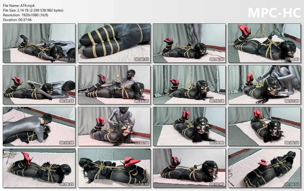 “Completely bound, Ao Yan was completely unable to move. All her senses were amplified, and she could only passively endure any stimulation. The glossy black stockings made her curvaceous figure look incredibly alluring, but what was most pleasurable was the constant rise and fall of her stockinged buttocks. Because the bob was out of control throughout, its presence was constantly being acknowledged. Due to the tight bondage and the gag pulled up to the extreme, Ao Yan’s body was essentially immobile no matter how much she struggled, resulting in the constant rise and fall of her stockinged buttocks—a sight that was truly arousing. Of course, Ao Yan was whimpering the whole time, whether from the discomfort of the gag being stretched to its limit or from the trembling of the bobby bowl, it was hard to tell. In any case, this initially unruly girl had now become a shameful, strictly restrained slave. Of course, she was still considerate enough to occasionally turn Ao Yan over so the pressure would be more even, but it didn’t change her state. She was left like this for over half an hour, and when she was finally untied, Ao Yan was practically exhausted. However, normally, a slave shouldn’t be untied, but Ao Yan needs to gradually get used to her slave state. It’s okay, take it slow, Ao Yan will definitely become better and better, keep trying!”