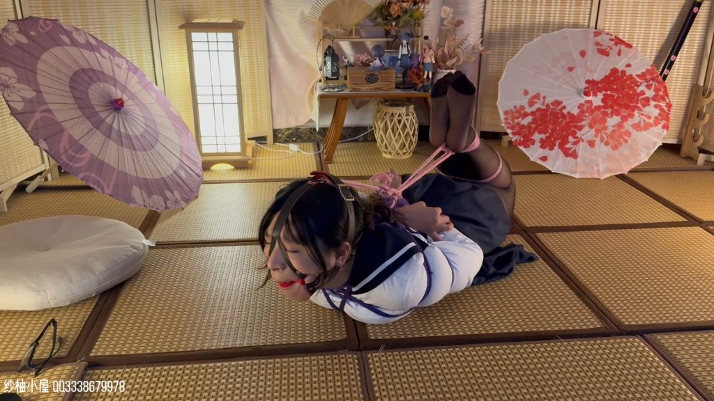 “Female model: Mi Fan. A female student, Mi Fan, was forced into a flexibility test through bondage while applying for a fashion model job. She was bound in harnesses, gagged, and forced to raise her head with a gag and small toys inserted. It turned out to be a setup by an evil rope bondage company! Forced into a lifelong rope bondage model, she was imprisoned in a small room awaiting rescue. Extra-long dialogue with subtitles! The female student applying for the job gradually discovered that the company’s demands on her were becoming increasingly outrageous, even to the point of binding her in harnesses, gagged, and forcing her head up. Finally, the company revealed that it was all a scam, and the female student was left bound and confined to the small room. The model’s struggle and performance were very convincing and energetic!”