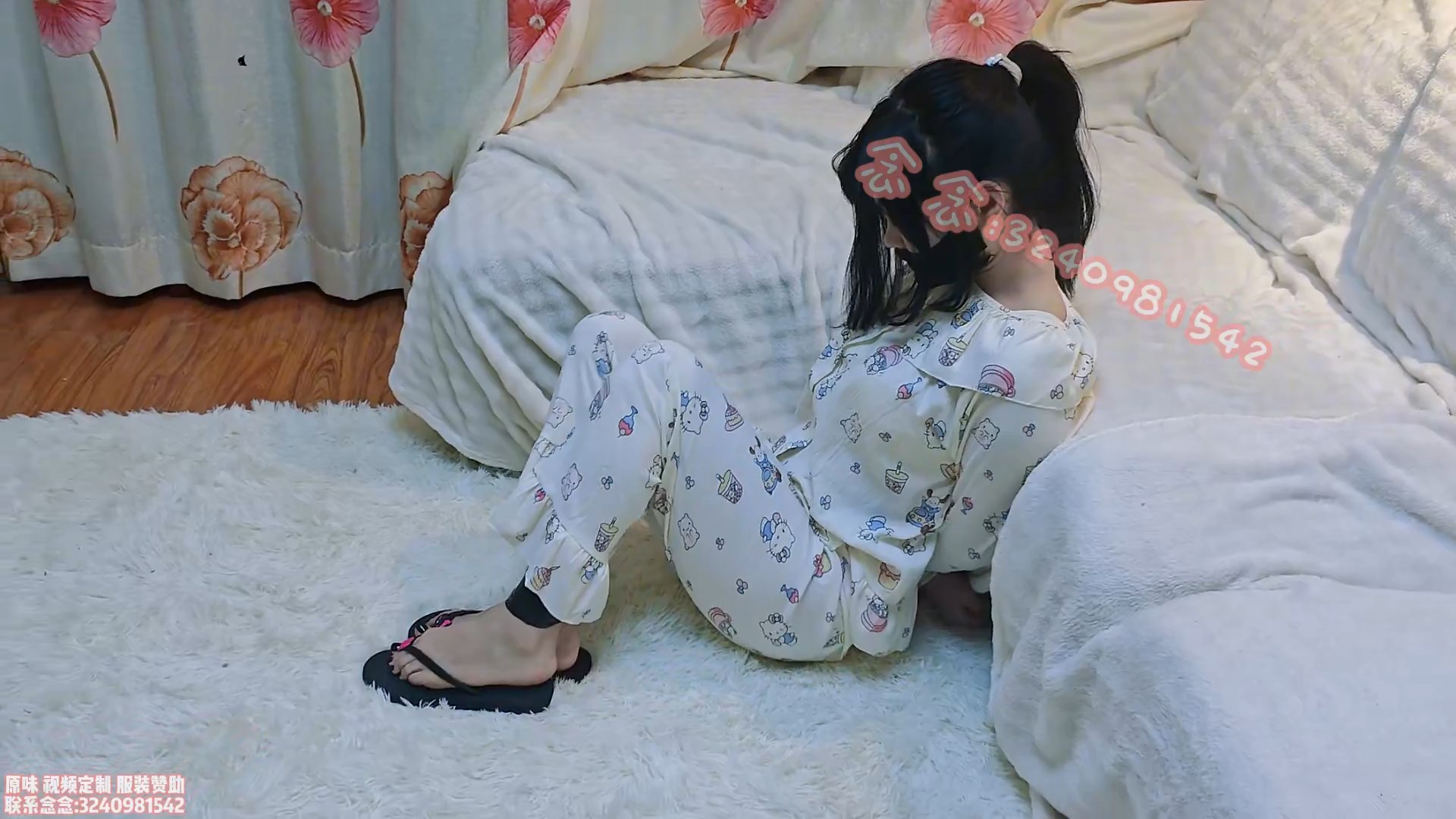 “The opening mini-drama shows Niannian playing on her phone at home when she is knocked unconscious by intruders. When she wakes up, she finds her hands and feet bound and her mouth gagged. While she struggles, the intruders unbutton her pajamas and pull down her pajama bottoms to her ankles, tying her big toe with a thin rope. They then insert a vibrating device into her underwear and tickle her, torturing her throughout the process.”