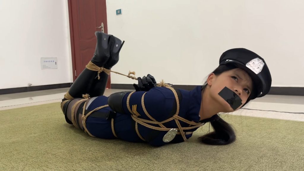 “Cosplay uniform tight-fitting jumpsuit over-the-knee boots, Japanese style bondage with ropes for full-body restraint.”