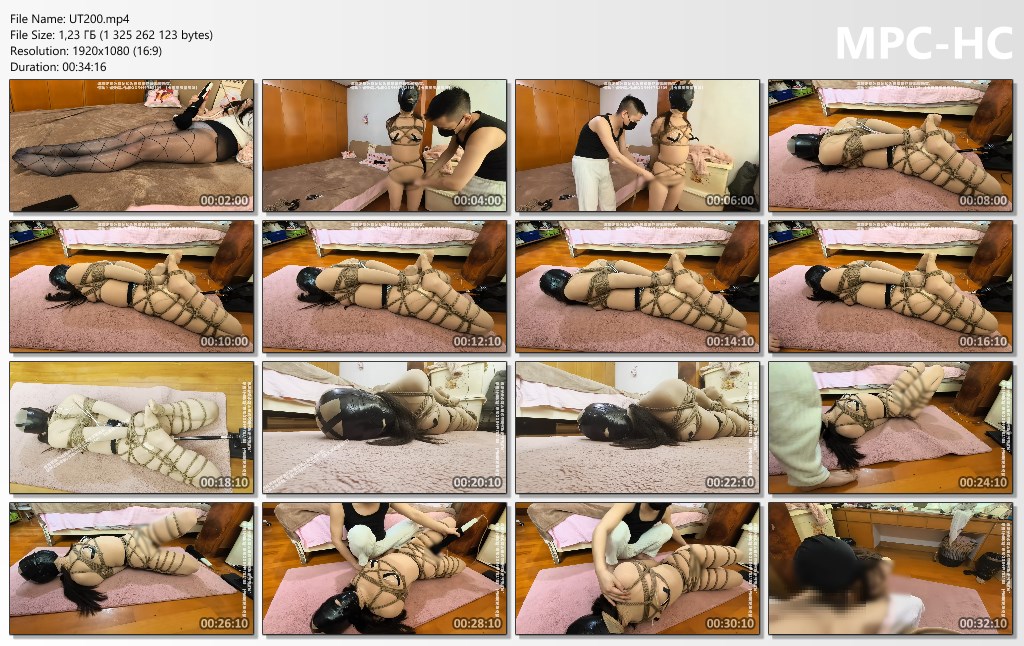 “From the script: Masturbation is discovered, then she is tightly bound and satisfied with a sex machine. Her hands are covered with 5 layers of short stockings, then she is subjected to sensory deprivation with tape, multiple times with tape, finally tortured to exhaustion.”