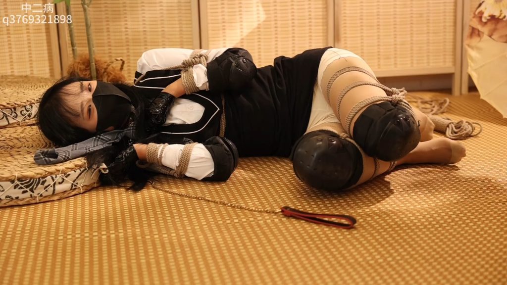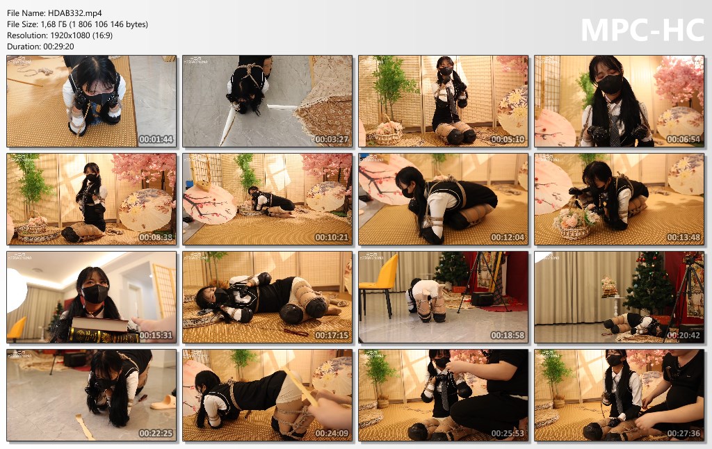 “The dog-bondage training of the delicate twin-tailed girl Beibei; the young dog slave obeys her master’s commands.”