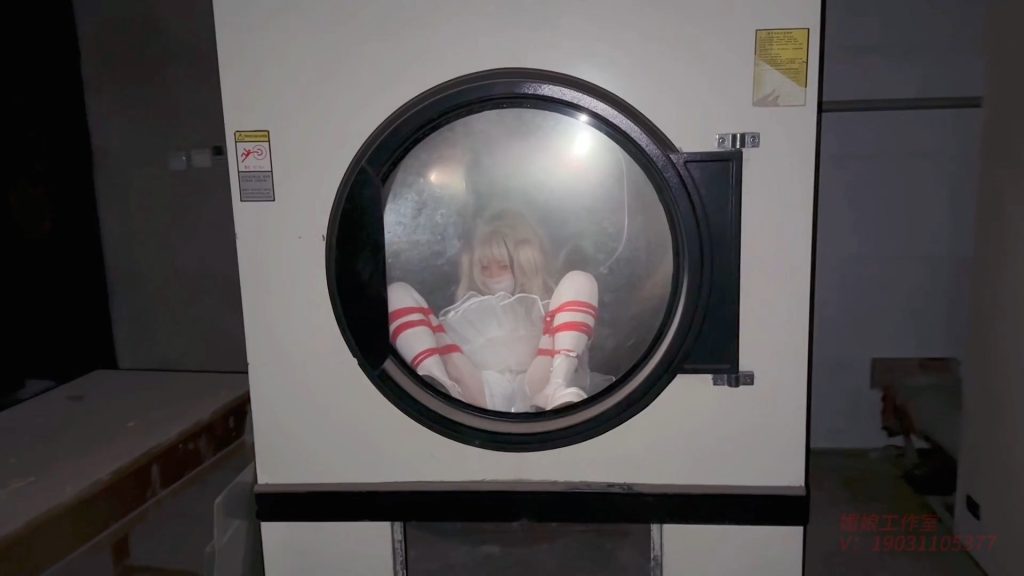 “Jin Chu wanted to play with enema P-machines and other large-scale BDSM activities, so she found Jin Nian, whom she considered very professional. After meeting with Teacher Jin Nian, she wore a pink outfit, white stockings, and 10cm high heels, and was bound tightly with her arms and thighs tied as Jin Nian requested, waiting here… When Jin Nian arrived, he said that she could play these games, but she had to pass Jin Nian’s test first. Each test corresponded to Jin Chu’s physical fitness and psychological challenge. The test consisted of three levels. Only by passing all three levels could she meet the requirements and play what Jin Chu wanted. Level 1: Finding the Master Strengthening Submissiveness With her arms and thighs tied with an extra rope, Jin Chu had difficulty walking. Finding Master Jin Nian in this chaotic place would count as successfully completing the first level challenge. The second challenge: Training the female dog’s endurance. Jin Chu is suspended from a tree by one leg with a rope and a ZD rod attached. She must endure the pain to pass the second challenge. The third challenge: Strengthening the female dog’s willpower. The ultimate challenge: Outdoor placement. Jin Chu is placed inside a giant washing machine by Jin Nian, her legs spread in an M-shape, with a ZD rod placed in her private parts. Jin Nian says: “I’ll leave this phone. Call me first thing tomorrow morning. If I don’t answer, you’ve failed this challenge.” Then, Jin Nian leaves. Jin Chu is left alone in the large room as darkness falls. She can only kick the washing machine door repeatedly, to no avail. Will Jin Chu be able to complete the challenge…?”