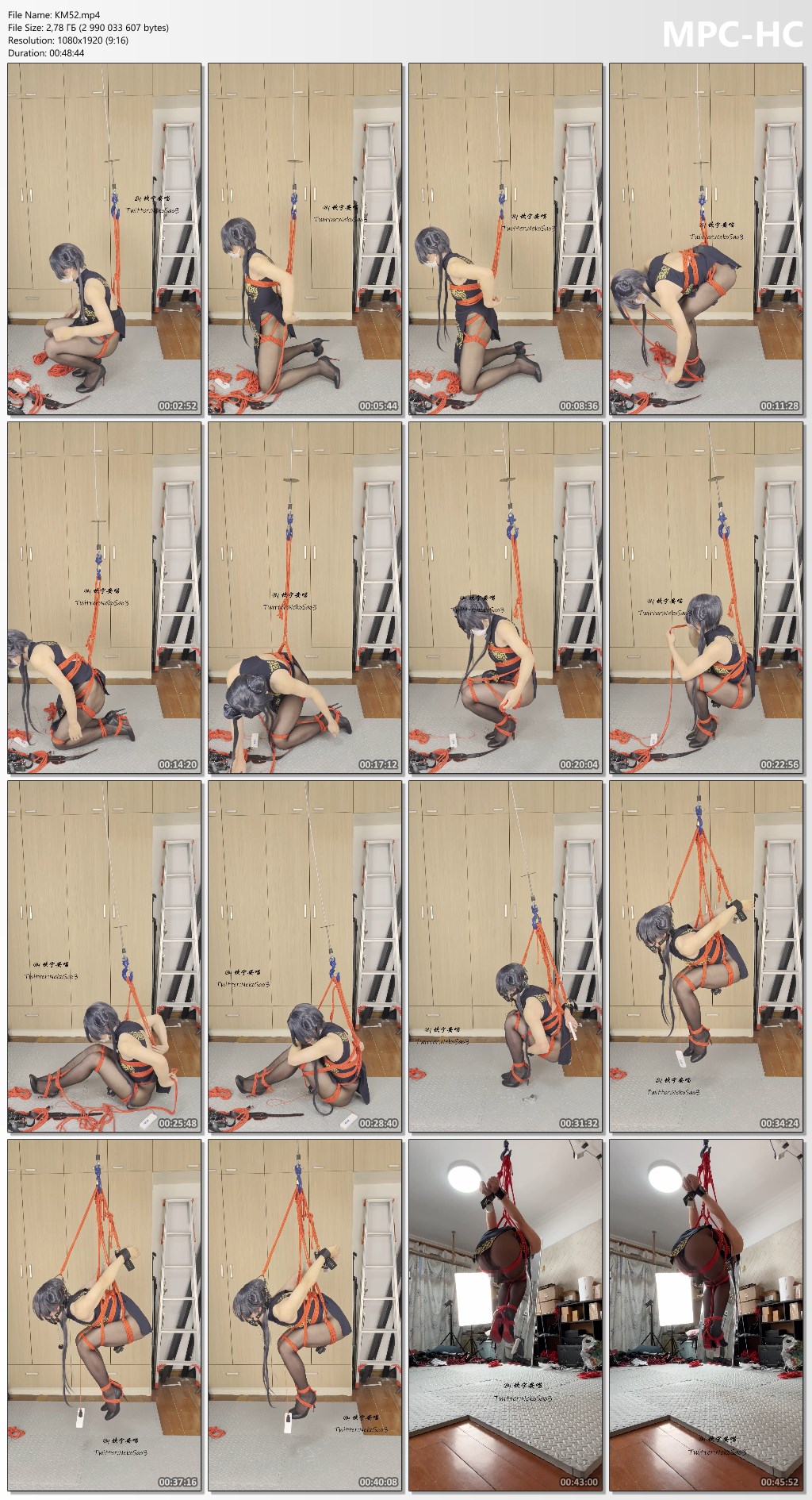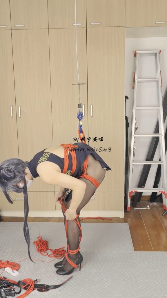 “Hello, this is Kanmiao, a boy trying hard to become cute~ This is a timed self-bondage suspension shoot. The character is still the classic Fei Saki, and the pose is an extreme forced bending suspension version. Physically, it achieves a restraint experience similar to group bondage while still allowing for some struggle. It feels more suitable for being bound than self-bondage… The first 30 minutes are the self-bondage process.”
