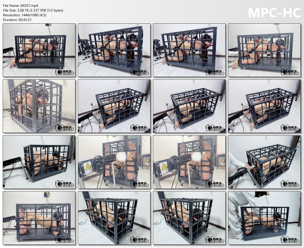 “A busty petite beauty experiences cage bondage, her arms hanging straight behind her in the cage, forcibly fixed and unable to struggle. Anal hooks are tightened, forcing her head up, and she experiences continuous orgasms under the stimulation of a vibrator and AV rod.”