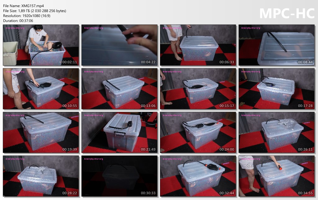 “Now we’ve finally filmed a complete video documenting Xiao Meng’s experience of being buried in a Puyo Puyo ball and enjoying the fun. The initial wait was long, as the tiny ball slowly expanded after absorbing water. Once we determined that the soft ball was large enough to accommodate Xiao Meng, she eagerly climbed into the box, slowly curled up, and lay down. The staff quickly connected her to a breathing tube and finally pushed her head completely into the box. I threaded the tip of the tube through a small hole drilled in the lid beforehand, closed the lid, and now Xiao Meng’s breathing was entirely in my hands. Next came a series of procedures: manually blocking the breathing tube; connecting a breathing bag without an inhalation valve to the breathing tube; connecting a KENZE electronic breathing valve to the breathing tube and activating random mode; connecting another breathing bag without an inhalation valve to the inlet; directly covering the breathing tube with a plastic bag; and finally connecting a flow-sensing check valve to the breathing tube. It was quite a variety of methods! Listening to Xiaomeng’s breathing through the flow-sensing check valve, it was mostly steady, only occasionally closing the check valve with a deep breath. Now we’re all tired from playing, let’s turn off the lights and rest. I’m sure Xiaomeng will sleep soundly in her box.”