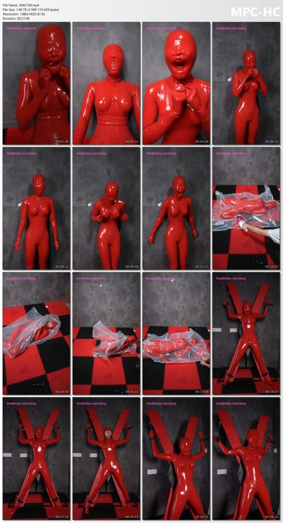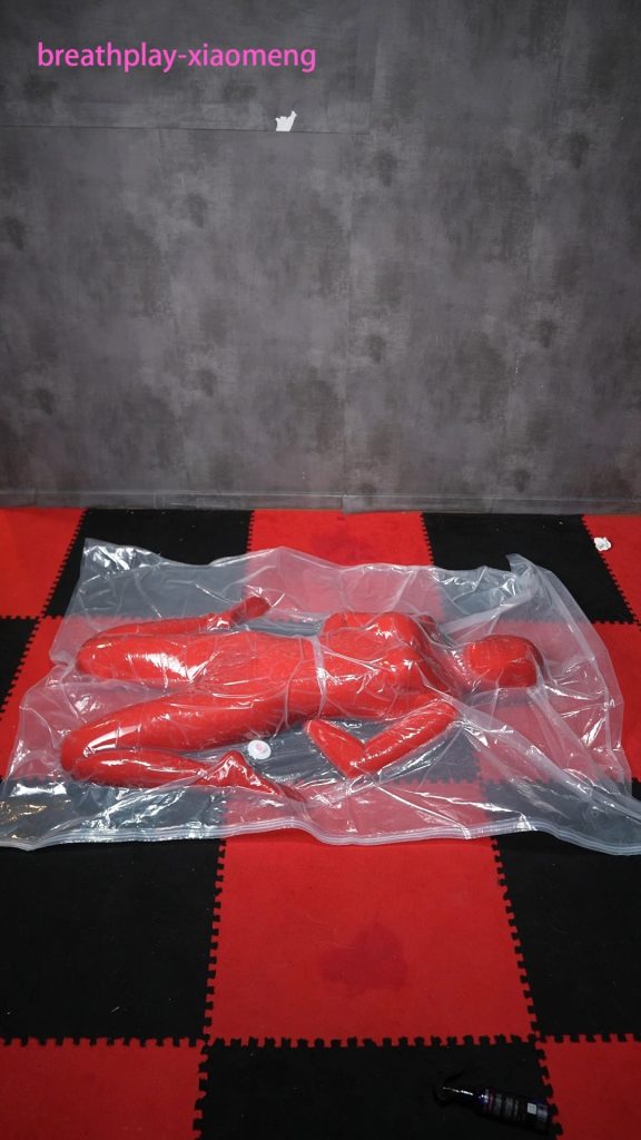 “Xiao Yu was wearing a red latex suit, and I pulled out a long-unused red needle-pierced latex headgear. Its breathing control was incredibly powerful, without a doubt. There were only a few 0.1mm needle holes around her mouth, her only connection to the outside world. She was completely encased in this ZX mask, and then boxing gloves were put on, tightly binding her fingers, preventing her from breaking free. Although her limbs were free, removing the headgear with her fists alone was impossible. She had no choice but to focus on breathing. Any unconscious movement would only accelerate her oxygen debt accumulation. The situation worsened; she was sealed in a vacuum bag. Even with only a small amount of air left in the compression bag, the breathing headgear made it difficult to alleviate the pain in her lungs. Even opening the compression bag—an action that usually signifies relief in compression bag games—only prolonged her suffering. The enormous oxygen debt accumulated in the compression bag could be compensated for with just a small amount of air. Was this mercy or torture? In the end, Xiaoyu was nailed to the Cross of St. Andrew. Her body was bound, struggling like a sacrifice, yearning for breath. Watching her struggle until she suffocated, only I could untie her, deciding her fate. Finally, the latex hood was removed, revealing a pale face and deep purple lips.”