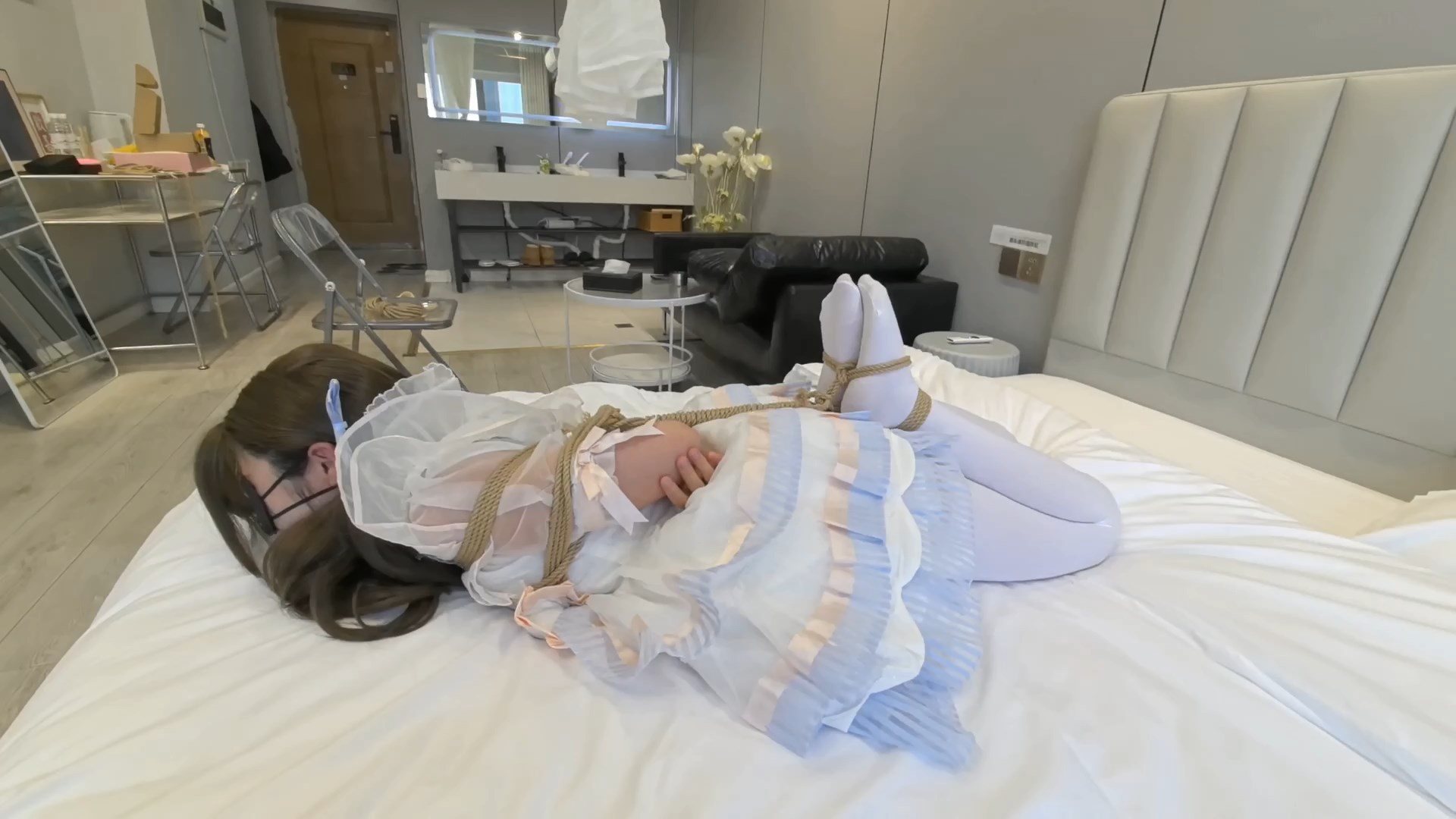 “What happens when cuteness and slutness coexist in a girl? No regard for morality, direct ZW to GC, forced leg separation, forced mouth gag, actively inserting the internal penis, highest frequency vibration exceeding five times for high orgasm, plus external and internal double vibration for continuous high orgasm. The girl’s GC performance is very obvious; saliva keeps flowing, soaking her skirt. Group bondage, P-machine, multiple modes of thrusting, moaning and panting, never stopping. The P-machine truly deserves to be called the king of toys, ten or twenty minutes of direct hits to the girl’s head. High-position four horses, extreme struggle, TK, white stockings, jade feet, let’s get started.”