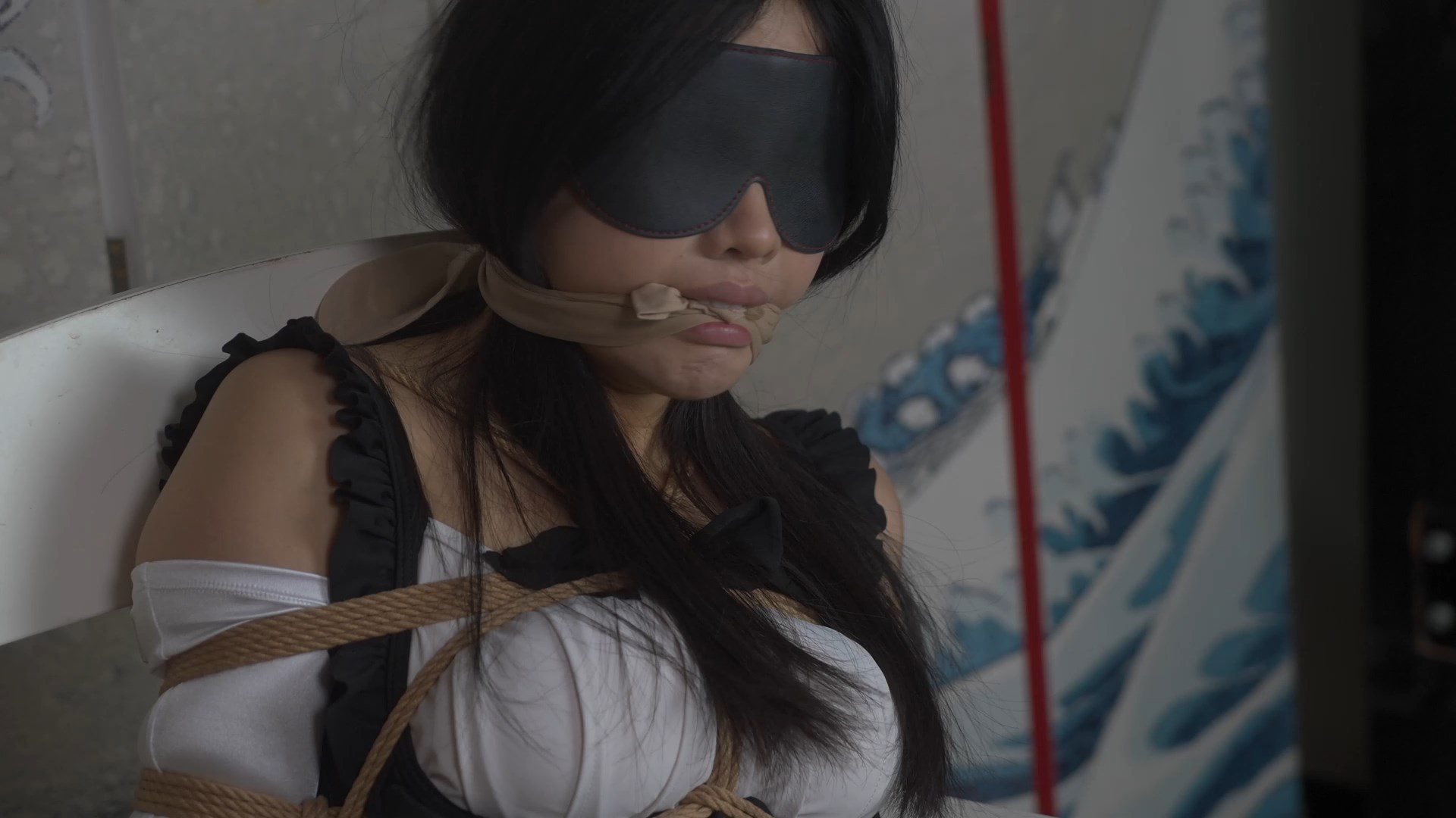 “0 is playing on her phone at home in her favorite maid outfit when she is attacked. She wakes up to find herself tied to a chair, blindfolded, and wearing long gloves. She’s told that if she can unlock her phone, they’ll release her. Damn it, this phone uses fingerprint unlock, which is impossible! Then she’s placed on the ground by four horses, and her mouth is sealed with stockings. If she still can’t unlock the phone, there’s really no chance…”