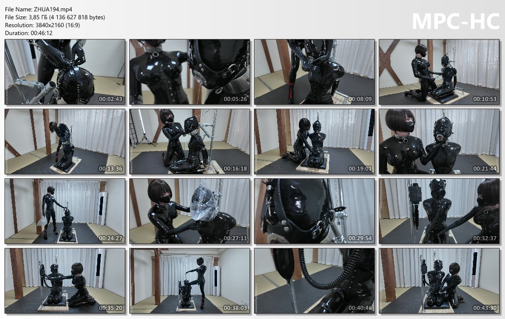“Claw is dressed in a full-body latex suit, with a heavy metal collar around its neck, 20cm high heels, and a latex corset emphasizing its figure. Who would have thought that this obedient claw, usually played with at will by its master, would transform into a latex dominant! Holding props, it trains the latex toy completely restrained by heavy shackles, its eyes filled with a vengeful pleasure, as if venting past humiliations. • The restraint method for the latex toys is roughly the same as ZHUA175: four-point fixation ensures the toys are completely deprived of their freedom. First, the latex toy’s neck is tightly secured to a fixed point on a steel pipe with a metal collar, preventing it from moving forward, backward, left, or right. A special horse harness muzzle is worn on its head, the metal ring forcibly opening its mouth to expose a wet oral cavity. A chain is pulled up from the top of the muzzle and fixed to a fixed point at the top of the steel pipe, ensuring the head remains tilted upward, completely restricting any movement of the neck and head. The hands are locked to fixed points on the back of the steel pipe with metal arm cuffs and handcuffs, limiting the range of arm struggle. The legs are bound with nylon straps, then fixed together. This forces the toy into a humiliating kneeling position, exposing its oral cavity, leaving it vulnerable to manipulation. • Unlike before, this time the latex claws themselves are training the other oral sex toys! The claws hold a transparent dildo, first tentatively probing inside the latex toy’s mouth, gently stirring, eliciting soft moans. Then, it was suddenly thrust deep into the throat, accompanied by the toy’s violent gagging and a gush of saliva. When it reached its deepest point, Claw used its palm to press the base of the dildo, forcing it to remain in the throat. The toy’s throat muscles spasmed, emitting a muffled groan. When pulled out, the dildo was covered in a sticky liquid, and the latex toy’s tears and saliva flowed freely. Not satisfied with this, Claw pushed the dildo to its deepest point, then wrapped it with transparent film and tightened it, firmly fixing the dildo in the toy’s throat, allowing it to remain there briefly. The toy’s panting turned into desperate whimpers. It was pulled out again, and this cycle was repeated, training the toy’s throat endurance. • After the deep throat training, Claw moved on to the more challenging breathing training. First, as foreplay, a transparent plastic bag was taken and slowly placed over the toy’s head, the straps tightened. The opening of the muzzle became the only breathing passage. The hot air exhaled from the toy’s mouth quickly formed a water mist, adhering to the inner wall of the plastic bag, which expanded and contracted with each breath. As the oxygen thins, the toy’s chest heaves violently, teetering on the edge of oxygen deprivation. Taking advantage of this, the claws tease and caress its sensitive areas, the dripping saliva acting as lubricant. The claws rub their fingers back and forth between its groin, eliciting a tremor mixed with pain and pleasure. • After the preheating, the next step is the gas mask, along with the breathing control system consisting of an electrically controlled shut-off valve and a breathing bag: The gas mask is put on, connected to a breathing tube, which in turn connects to the electrically controlled shut-off valve, and the breathing bag is connected to the shut-off valve. Each breath the latex toy takes must pass through multiple obstacles: from the mask’s breathing port, to the meter-long breathing tube, to the shut-off valve, then the breathing bag, and finally to the tiny breathing hole at the bottom of the breathing bag. Airflow is slow and difficult; each breath requires immense effort. • The remote control for the electrically controlled shut-off valve is operated by the claws. Pressing the OFF button cuts off all air supply, leaving the latex toy completely deprived of oxygen, struggling to survive only with the remaining air in its lungs. The latex toy’s body began to struggle violently, its limbs flailing futilely in its shackles, emitting muffled pleas for mercy. Claw watched coldly, waiting until the toy was on the verge of its limit before pressing the ON button to open the valve. The sudden influx of air caused the latex toy to gasp for breath, its breathing bag rapidly expanding and contracting. Before the latex toy could recover, Claw closed the valve again, repeating the cycle, completely controlling the toy’s breathing. The latex toy’s will gradually crumbled under the deprivation of oxygen… In this film, Claw appears as the dominant character, showing no mercy to a latex slave wearing the same toy equipment as her previous one. On the contrary, as if in a form of hidden revenge, she inflicts the same torture she had suffered—deep throat suffocation, deprivation of breath—onto this new latex toy. The transformation from victim to perpetrator creates a powerful contrast: the usually docile Claw Claw now has sharp eyes and ruthless methods; every movement exudes the pleasure of revenge, making one tremble yet fascinated (^_^). Note!: Claw Claw and the latex toys featured in this film are both crossdressers.”