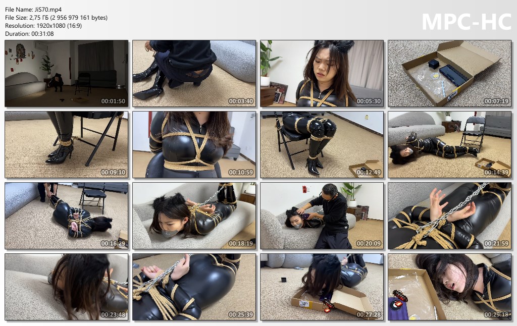 “A classic spy-themed scene: a beautiful catwoman in a black leather jacket and boots opens a mysterious box in the dark, revealing not treasure but white mist and a time bomb! Catwoman struggles and falls to the ground, and a man in black immediately pounces on her with a rope…”