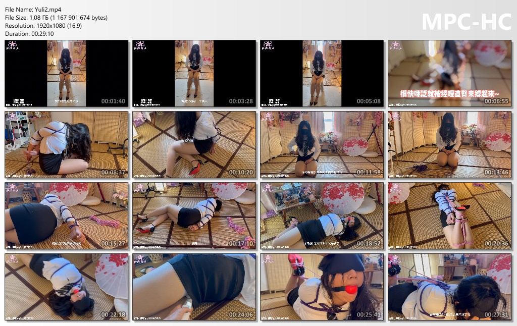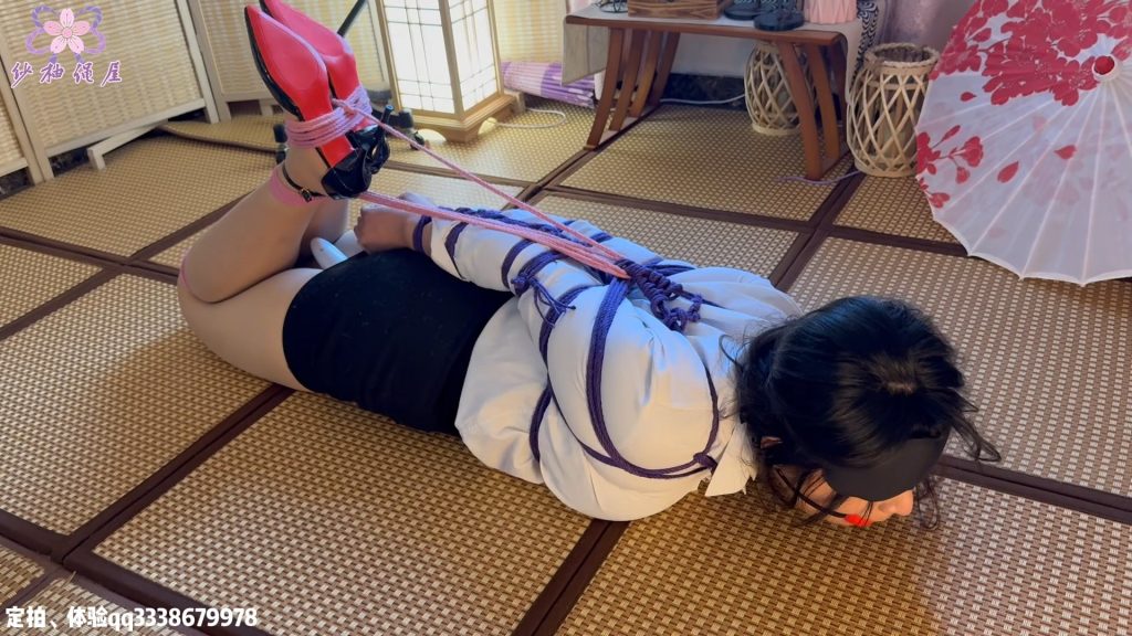 “Synopsis: Mi Fan, a female salesperson, was summoned by the company’s sales manager after two consecutive years of bottom-performing sales. Mi Fan pleaded with the manager not to fire her, and he hinted that she could keep her job, but she had to cooperate with the company in testing a new cotton-linen blend product. Mi Fan looked back and realized the product to be tested was actually rope. The manager said that if she was bound and forced to struggle free within a certain time, she could avoid the bottom-performing sales punishment and keep her job. Mi Fan thought about it and decided to try, and she successfully escaped. However, the manager said there would be a second, more advanced escape test with even tighter bindings, but the reward would be a generous year-end bonus. Mi Fan decided to try again, but this time she wasn’t so lucky… Mi Fan was bound tightly in a four-legged, straight-armed bondage position, blindfolded, and gagged with a 5.0cm oversized ball, drooling constantly. The manager said that if she managed to break free within ten minutes, she would still receive a reward; otherwise, there would be unexpected punishment. But Mi Fan was powerless to resist at this point. Ultimately, Mi Fan couldn’t escape and was placed in the small room, whimpering and drooling on the floor, with a small toy stuffed under her, waiting for someone to come and rescue her sometime later…”