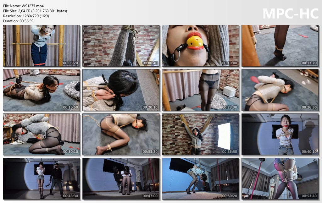 “The most painful rope bondage memory: From the start, her hands were handcuffed to one ring, while the other ring was suspended high behind her, with the rope and gag also pulled backward. The pain of having her hands in one ring was excruciating, so Ya Xi begged to have them removed, replacing the handcuffs with her hands suspended high behind her back. Her hands were no longer free, and her outer pants were forcibly removed, revealing black stockings. Her buttocks were mercilessly slapped. She was then subjected to standing on tiptoe and being suspended, neck and hand shackles, and the “four-horse” tight bondage, as well as the most painful extreme physical folding and binding. Each tightening of the rope doubled the pain throughout her body. Several hours of documentary footage have been condensed into a 40-minute short film for fellow enthusiasts”