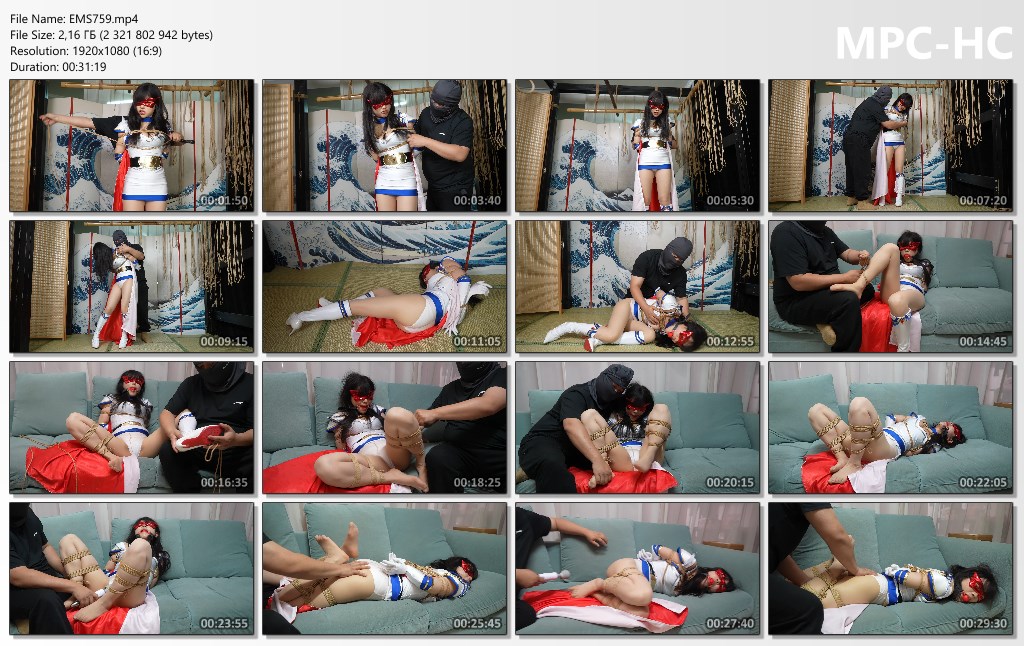 “A superheroine from Planet XX accidentally falls to Earth, only to be captured and forcibly subjected to abuse by Earth’s old trainer! Her shapely legs in stockings and white underwear are truly mouthwatering, not to mention 0’s dazzlingly round breasts! Brothers, go catch a superheroine like that and have some fun!”